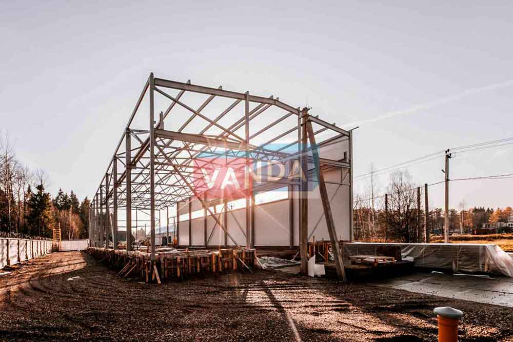 Для дальнейшего возведения конструкции из сэндвич-панелей, необходимо создать прочный каркас, в котором рентабельным вариантом является профильная труба, используемая для перекрытий и двутавровая балка, устанавливаемая в качестве колонн.