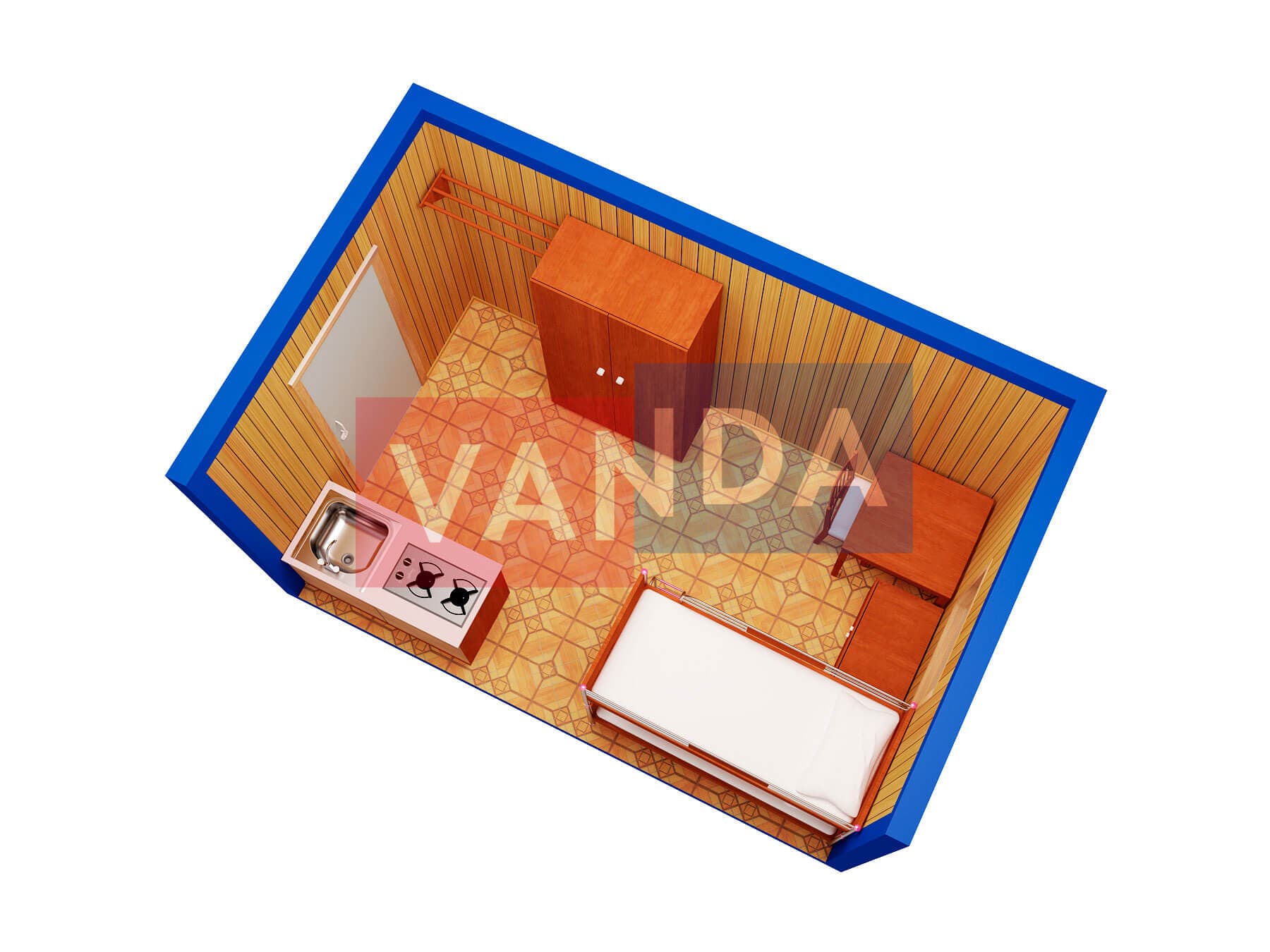 Металлическая бытовка с кухней в тамбуре 5,85 x 2,4 - Вагонка деревянная
