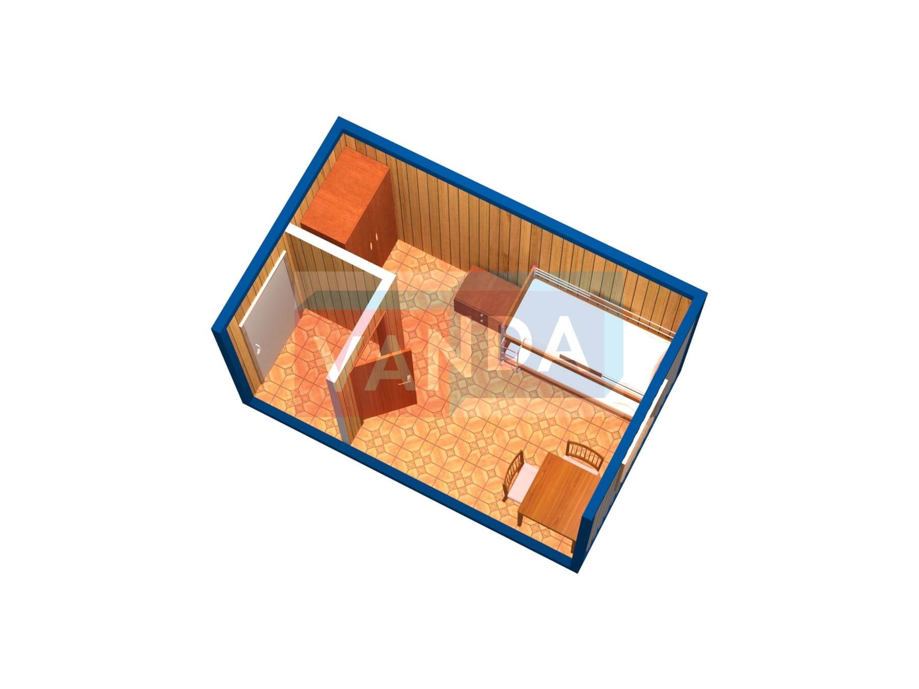 Металлическая бытовка с кухней в тамбуре 5,85 x 2,4 - Оргалит ДВП