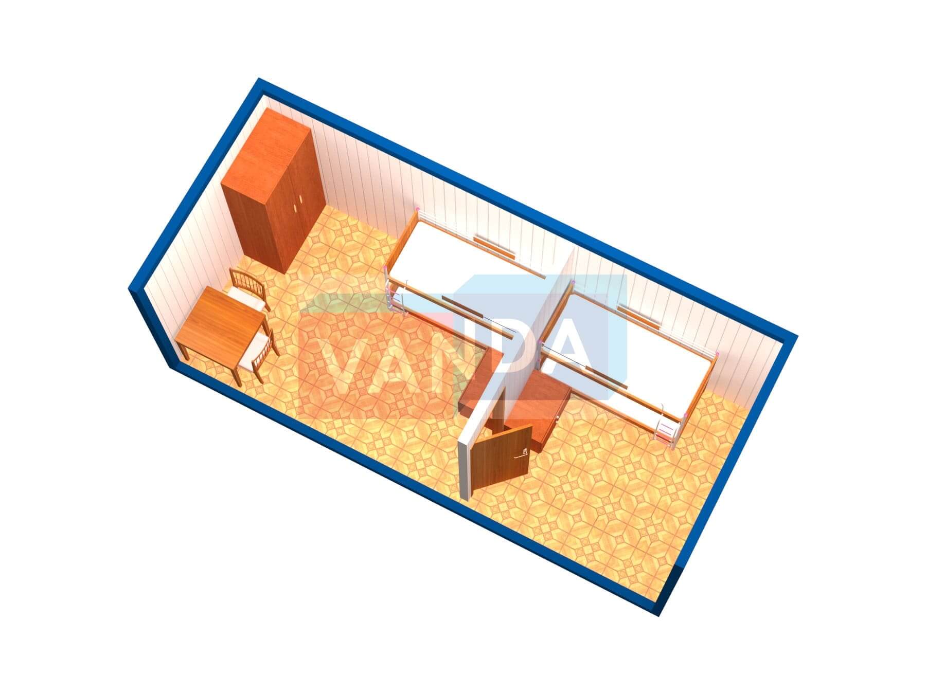 Металлический блок контейнер распашонка 5,85х2,4 - Вагонка ПВХ изготавливается из несущего каркаса (верхняя и нижняя обвязка): швеллер 100х50х3 мм., угловые стойки: сложно - гнутый угол 90х90х3 мм., крыша блок-контейнера: металл сварной 0,9-1 мм., качественная наружная отделка: оцинкованный профлист, внутренняя отделка стен: Вагонка ПВХ, внутренняя отделка потолка: Вагонка ПВХ, вспомогательный деревянный каркас (стены): брусок 40х75 мм., лаги пола: обрезная доска 40х100 мм., лаги потолка: обрезная доска 40х100 мм., выполнено утепление: Минеральная вата «ISOVER» – 50 мм. и пароизоляция: плёнка техническая, черновой пол состоит из: обрезная доска 20 мм. (2 сорт), чистовой пол покрыт: ДСП строительное 16 мм., отделка пола выполнена из качественных материалов. Контейнер комплектуется окнами: деревянное, двойное остекление 800х1000, входной дверью: ДГ 21-8 обшита снаружи оцинкованным листом, врезной замок и внутренними дверями: ДГ 21-8 (при наличии перегородки). Если в БК присутствуют перегородки, то для них используется: брусок 40х50 мм.