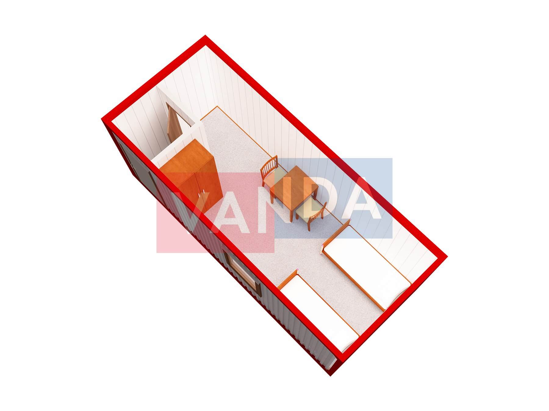 Бытовка металлическая утепленная №3 (вариант 2) изготавливается из несущего каркаса (верхняя и нижняя обвязка): швеллер 120х50х3 мм., угловые стойки: сложно - гнутый угол 90х90х3 мм., крыша блок-контейнера: металл сварной 0,9-1 мм., качественная наружная отделка: оцинкованный профлист, внутренняя отделка стен: Вагонка ПВХ, внутренняя отделка потолка: Вагонка ПВХ, вспомогательный деревянный каркас (стены): брусок 40х75 мм., лаги пола: обрезная доска 40х100 мм., лаги потолка: обрезная доска 40х100 мм., выполнено утепление: Минеральная вата «ISOVER» – 50 мм. и пароизоляция: плёнка техническая, черновой пол состоит из: обрезная доска 20 мм. (2 сорт), чистовой пол покрыт: ДСП строительное 16 мм., отделка пола выполнена из качественных материалов. Контейнер комплектуется окнами: деревянное, двойное остекление 800х1000, входной дверью: ДГ 21-8 обшита снаружи оцинкованным листом, врезной замок и внутренними дверями: ДГ 21-8 (при наличии перегородки). Если в БК присутствуют перегородки, то для них используется: брусок 40х50 мм.