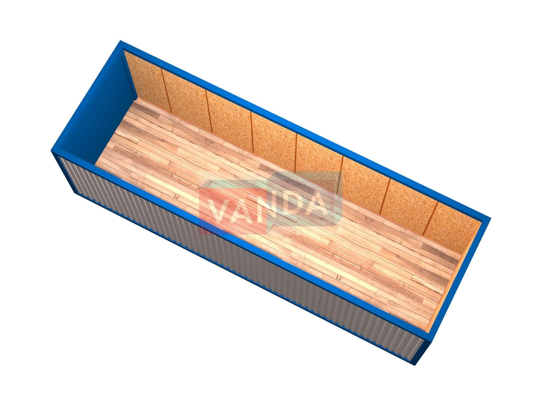 Бытовка под склад № 4 (Вариант 2) изготавливается из несущего каркаса (верхняя и нижняя обвязка): швеллер 100х50х3 мм., угловые стойки: сложно - гнутый угол 90х90х6 мм., крыша блок-контейнера: металл сварной 0,9-1 мм., качественная наружная отделка: оцинкованный профлист, внутренняя отделка стен: Плита OSB 9 мм., внутренняя отделка потолка: Плита OSB 9 мм., вспомогательный деревянный каркас (стены): брусок 40х75 мм., лаги пола: обрезная доска 40х100 мм., лаги потолка: обрезная доска 40х100 мм., выполнено утепление: Минеральная вата «ISOVER» – 50 мм. и пароизоляция: плёнка техническая, черновой пол состоит из: обрезная доска 20 мм. (2 сорт), чистовой пол покрыт: сухая, половая, шпунтованная доска 28 мм., отделка пола выполнена из качественных материалов. Контейнер комплектуется металлическими воротами.