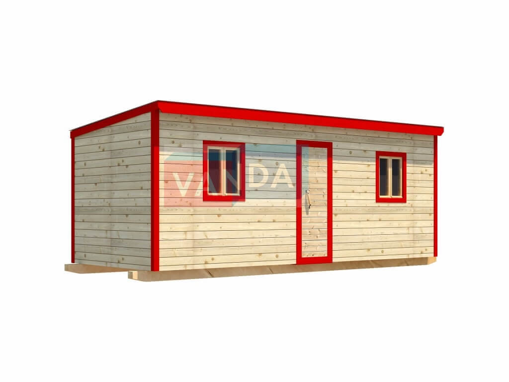 Строительная бытовка со сборкой на месте №4 (вариант 3) изготавливается из качественных материалов: обвязочный венец (сани): брус 100х150 мм., половые лаги: обрезная доска 40х150 мм., через 80 см. (плашмя), черновые полы: обрезная доска 20 мм. (2 сорт), (не сплошной настил, через 10 - 15 см.), чистовой пол покрыт: ДСП строительное 16 мм.. Для изготовления каркаса и перегородок используется: брусок 40х50 мм.. Для стропил используется: обрезная доска 40х150 мм., на кровлю ложится: оцинкованный профлист. Качественная наружная отделка: Имитация бруса, внутренняя отделка стен: Вагонка деревянная, внутренняя отделка потолка: Вагонка деревянная. Выполнено утепление: Минеральная вата «ISOVER» – 50 мм. и пароизоляция: плёнка техническая. Бытовка комплектуется окнами: деревянное, двустворчатое, одинарное остекление 800х800 мм., входной дверью: деревянная, наборная и внутренними дверями: деревянная, наборная (при наличии перегородки).