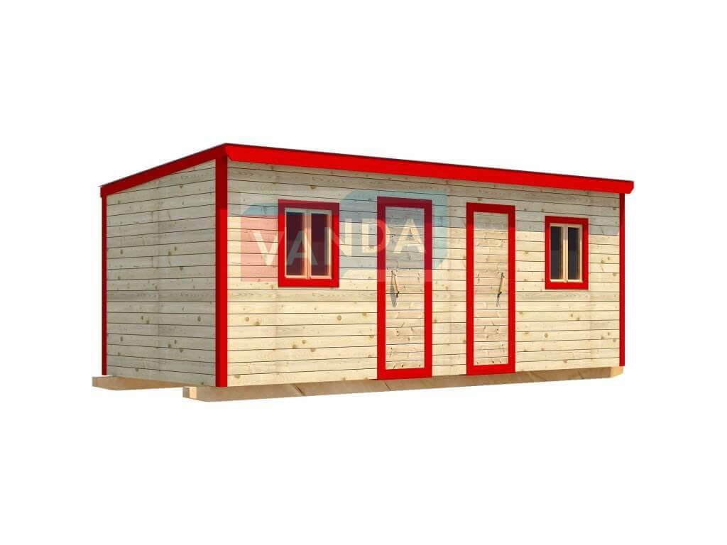 Строительная бытовка со сборкой на месте №6 (вариант 3) изготавливается из качественных материалов: обвязочный венец (сани): брус 100х150 мм., половые лаги: обрезная доска 40х150 мм., через 80 см. (плашмя), черновые полы: обрезная доска 20 мм. (2 сорт), (не сплошной настил, через 10 - 15 см.), чистовой пол покрыт: ДСП строительное 16 мм.. Для изготовления каркаса и перегородок используется: брусок 40х50 мм.. Для стропил используется: обрезная доска 40х150 мм., на кровлю ложится: оцинкованный профлист. Качественная наружная отделка: Имитация бруса, внутренняя отделка стен: Вагонка деревянная, внутренняя отделка потолка: Вагонка деревянная. Выполнено утепление: Минеральная вата «ISOVER» – 50 мм. и пароизоляция: плёнка техническая. Бытовка комплектуется окнами: деревянное, двустворчатое, одинарное остекление 800х800 мм., входной дверью: деревянная, наборная и внутренними дверями: деревянная, наборная (при наличии перегородки).