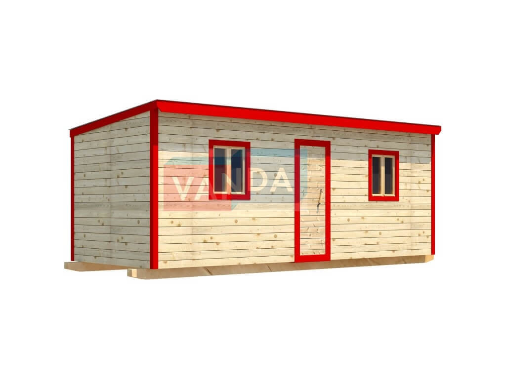 Строительная бытовка со сборкой на месте №8 (вариант 3) изготавливается из качественных материалов: обвязочный венец (сани): брус 100х150 мм., половые лаги: обрезная доска 40х150 мм., через 80 см. (плашмя), черновые полы: обрезная доска 20 мм. (2 сорт), (не сплошной настил, через 10 - 15 см.), чистовой пол покрыт: ДСП строительное 16 мм.. Для изготовления каркаса и перегородок используется: брусок 40х50 мм.. Для стропил используется: обрезная доска 40х150 мм., на кровлю ложится: оцинкованный профлист. Качественная наружная отделка: Имитация бруса, внутренняя отделка стен: Вагонка деревянная, внутренняя отделка потолка: Вагонка деревянная. Выполнено утепление: Минеральная вата «ISOVER» – 50 мм. и пароизоляция: плёнка техническая. Бытовка комплектуется окнами: деревянное, двустворчатое, одинарное остекление 800х800 мм., входной дверью: деревянная, наборная и внутренними дверями: деревянная, наборная (при наличии перегородки).