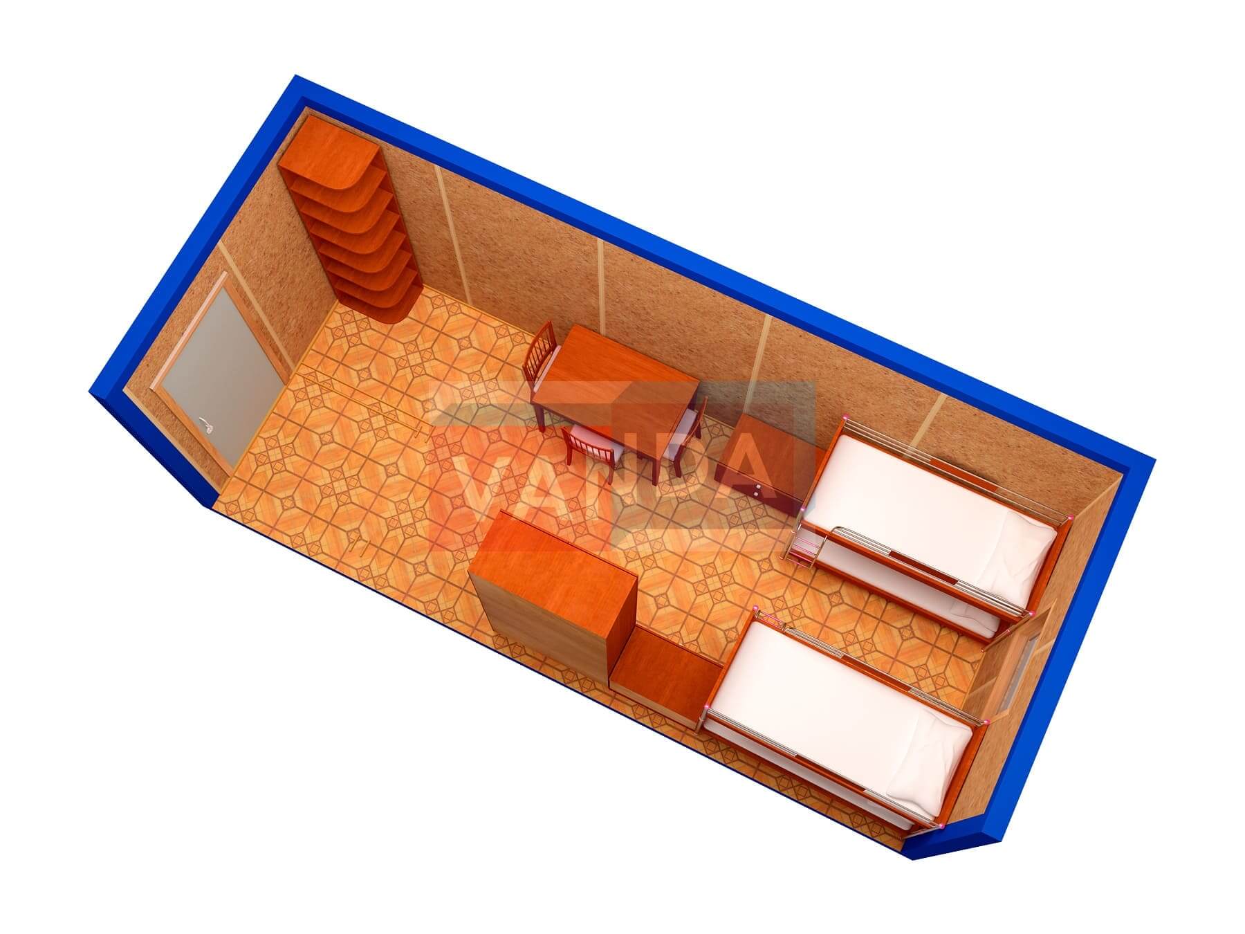 Металлическая бытовка без тамбура 5,85 x 2,4 - Оргалит ДВП
