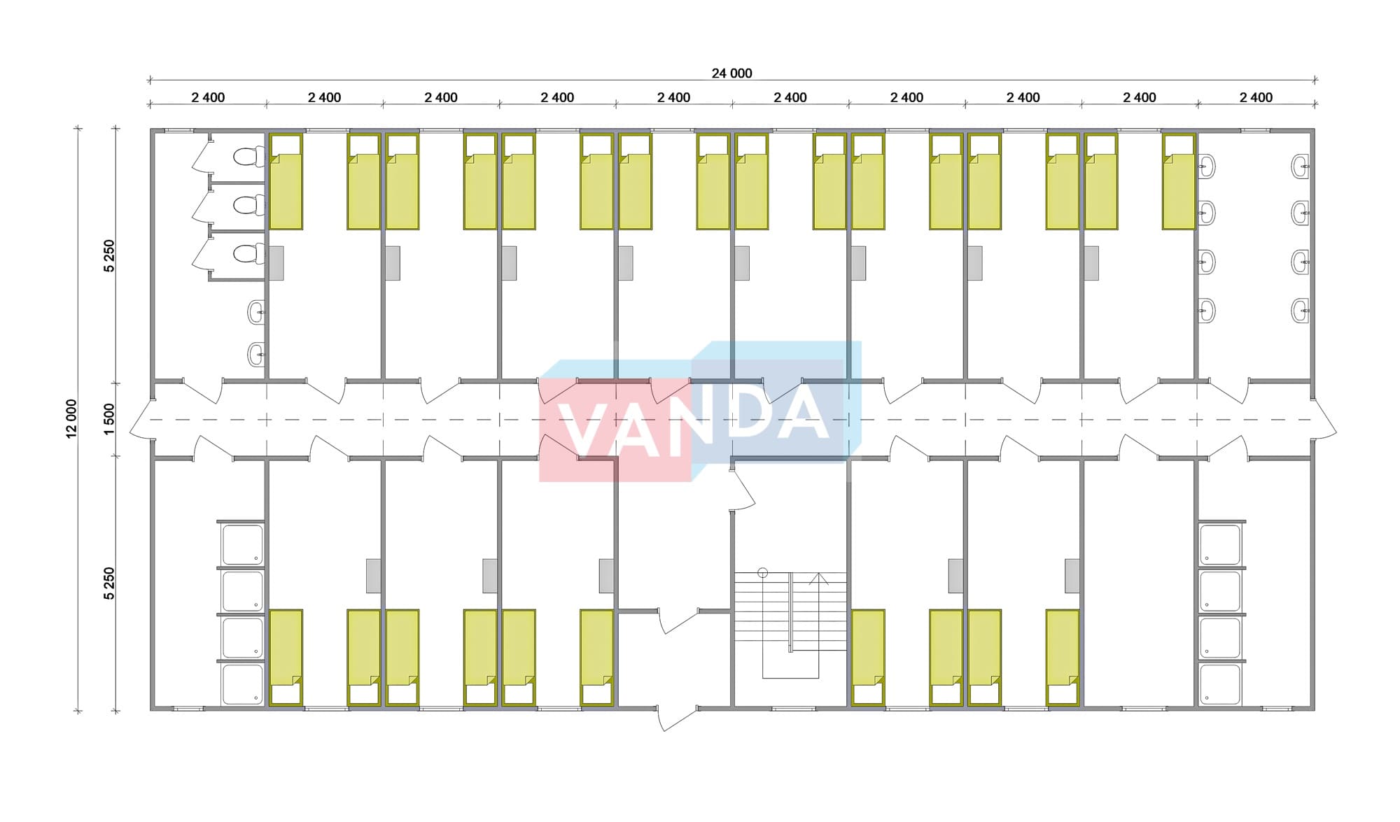 Проект общежития из блок контейнеров 12x24 Панели МДФ