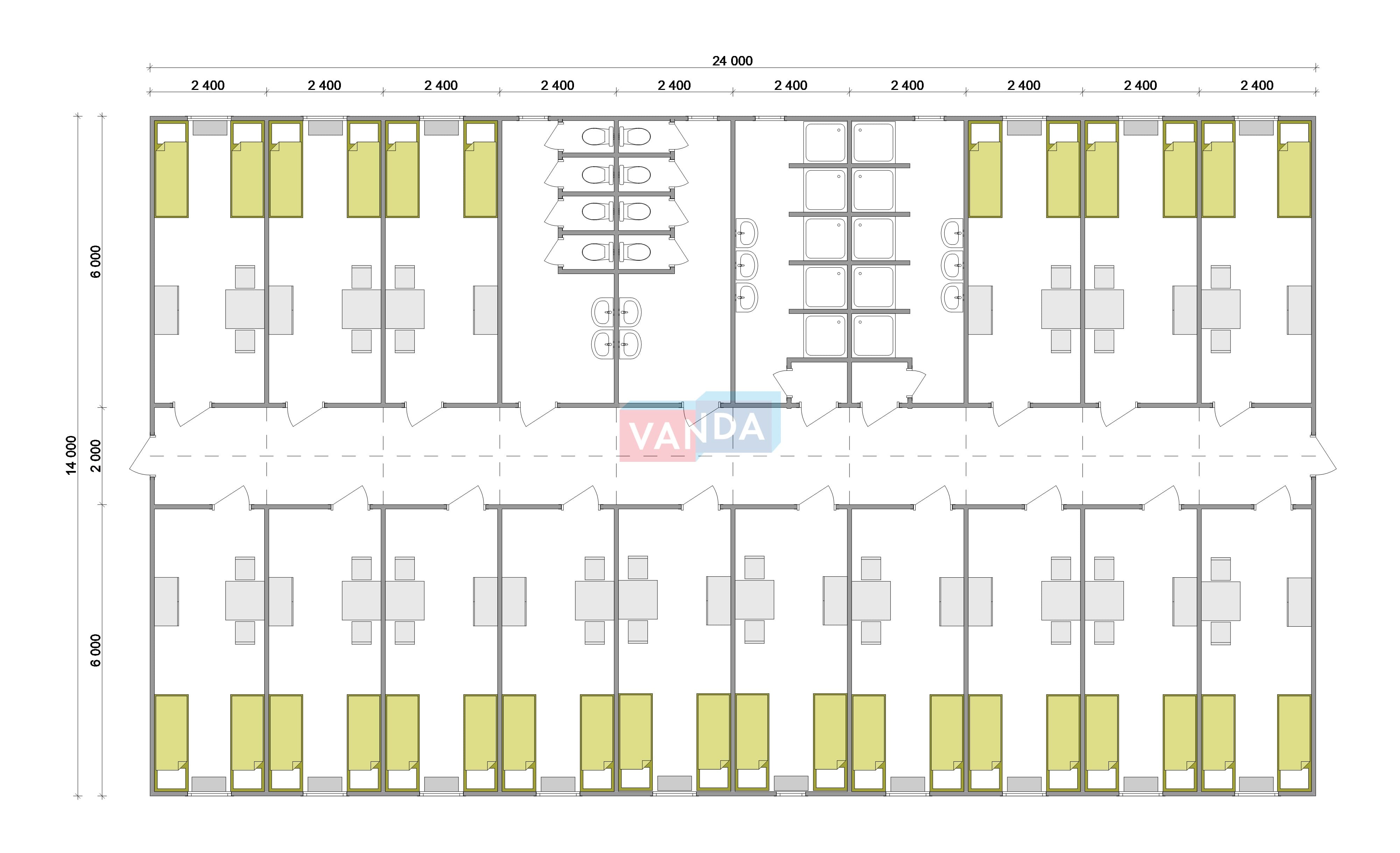 Проект общежития из блок контейнеров 14x24 ЛДСП