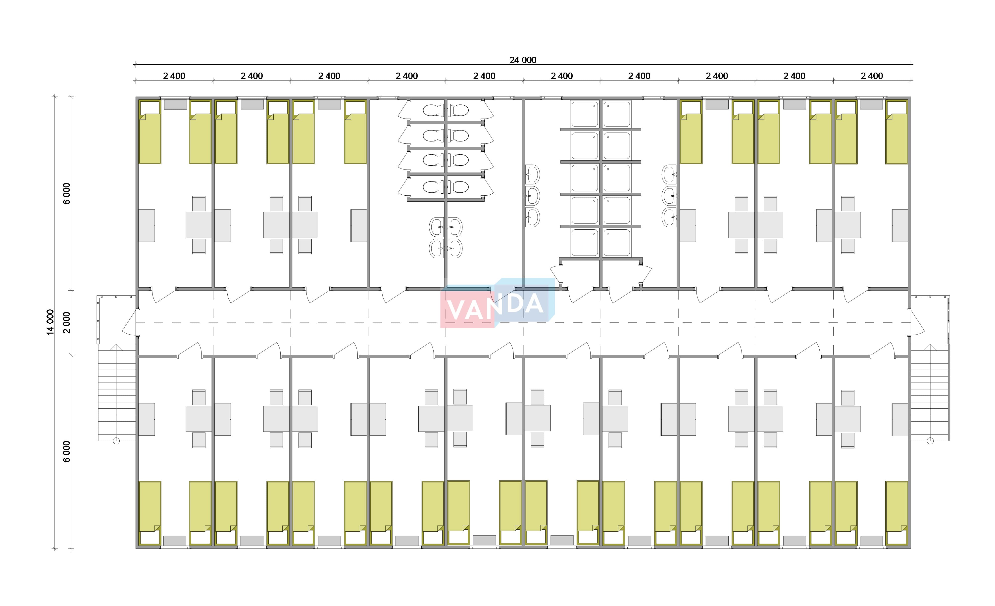 Проект общежития из блок контейнеров 14x24 Панели МДФ