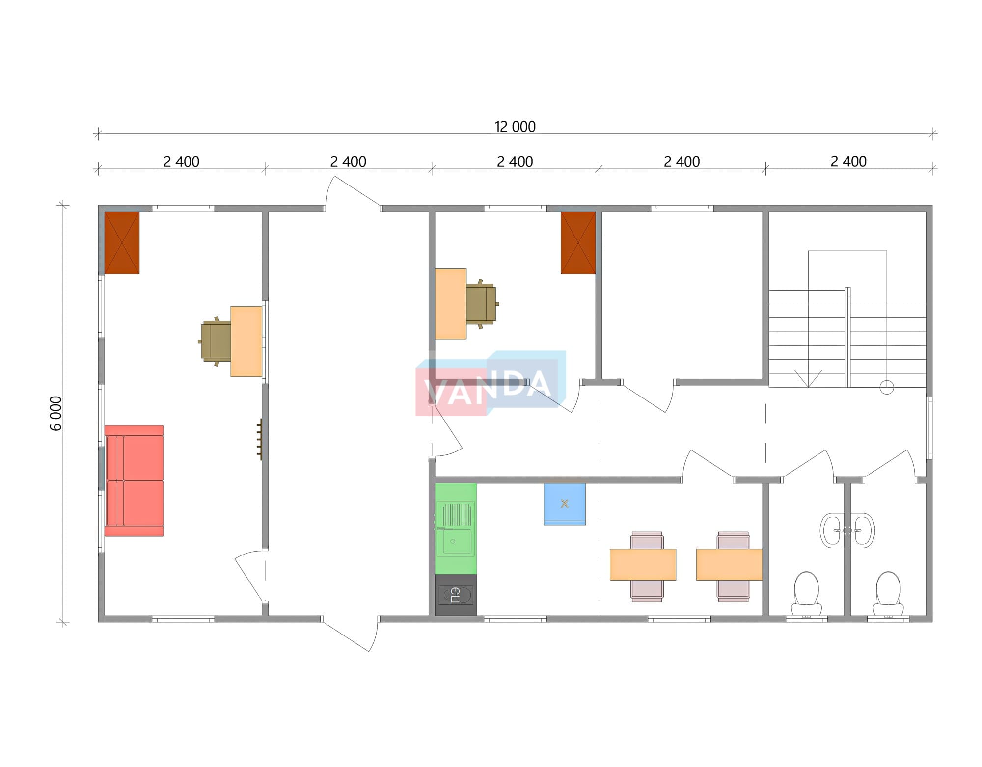 ПРОЕКТ СТОЛОВОЙ ИЗ БЛОК КОНТЕЙНЕРОВ 12x24