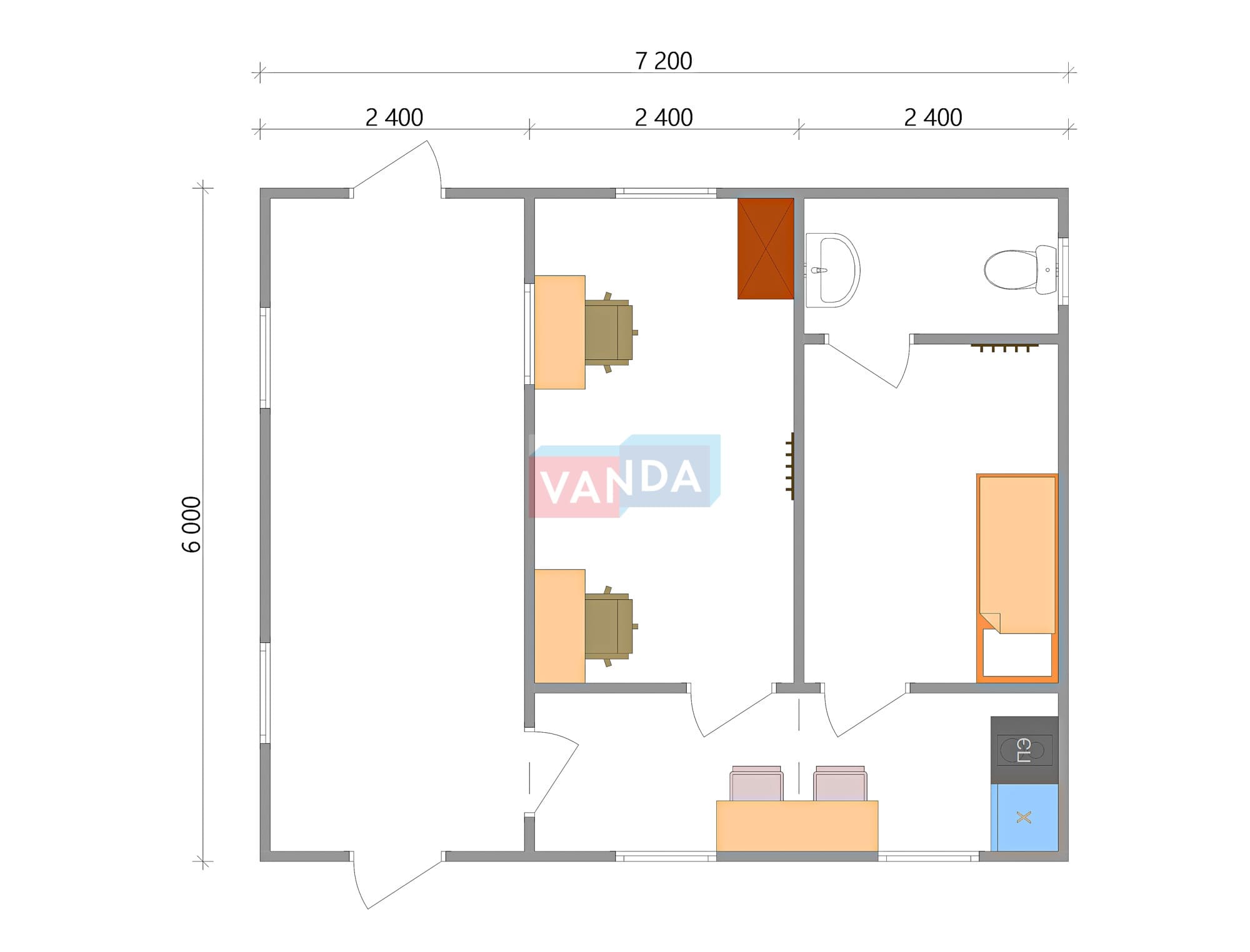 • Габаритные размеры - стандартные размеры одного модульного здания (наружные): Длина: 6 м Ширина: 2,45 м Высота: 2,5 м.