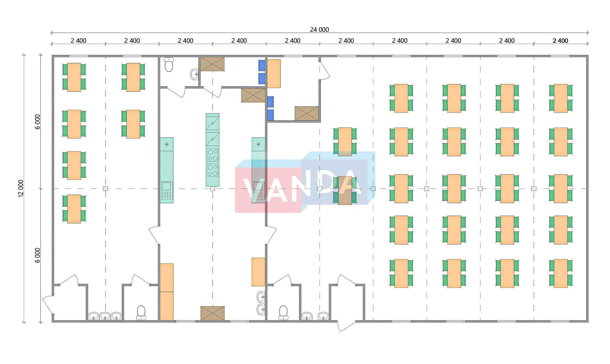 ПРОЕКТ СТОЛОВОЙ ИЗ БЛОК КОНТЕЙНЕРОВ 12x24