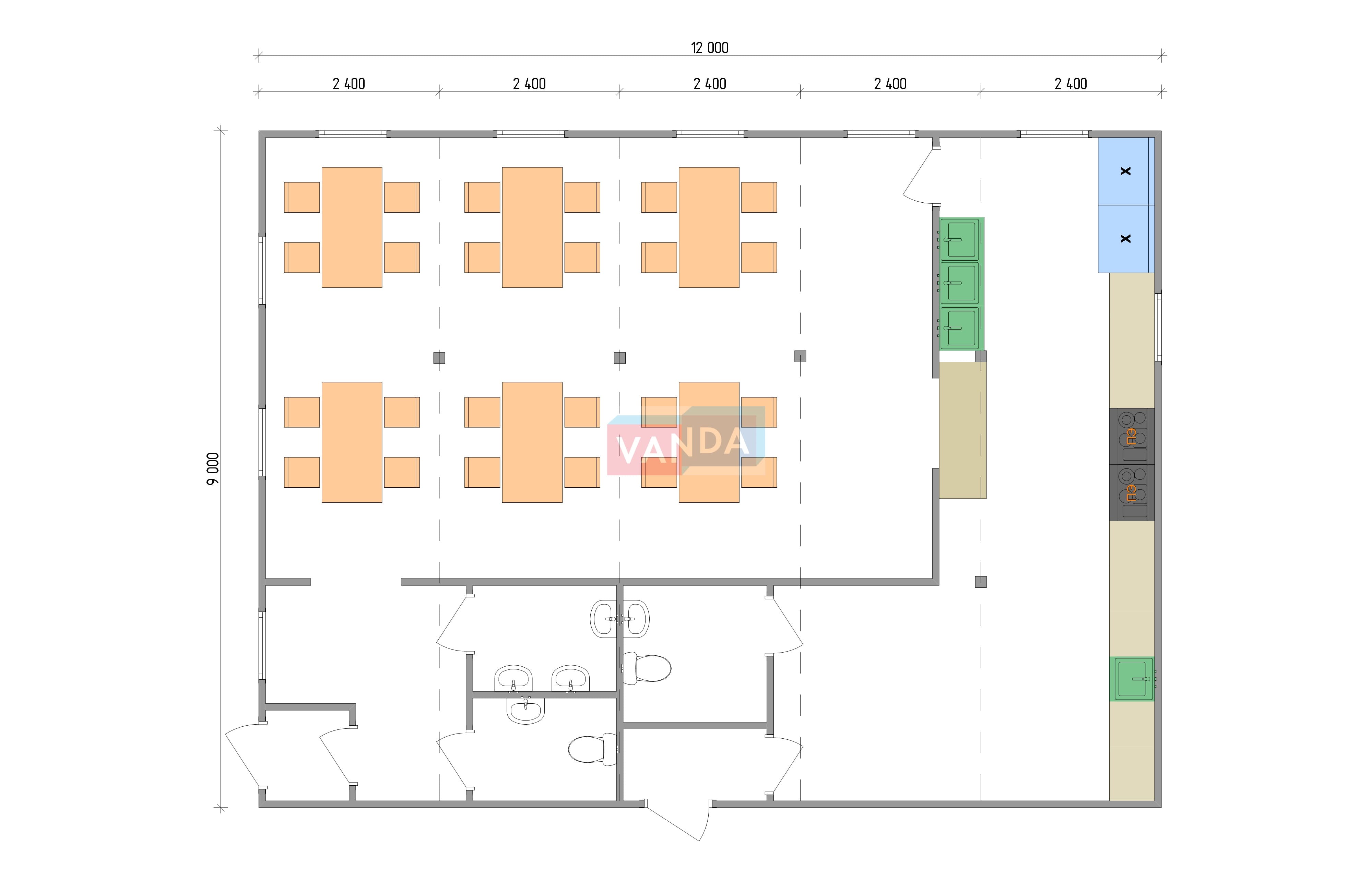 ПРОЕКТ СТОЛОВОЙ ИЗ БЛОК КОНТЕЙНЕРОВ 9x12