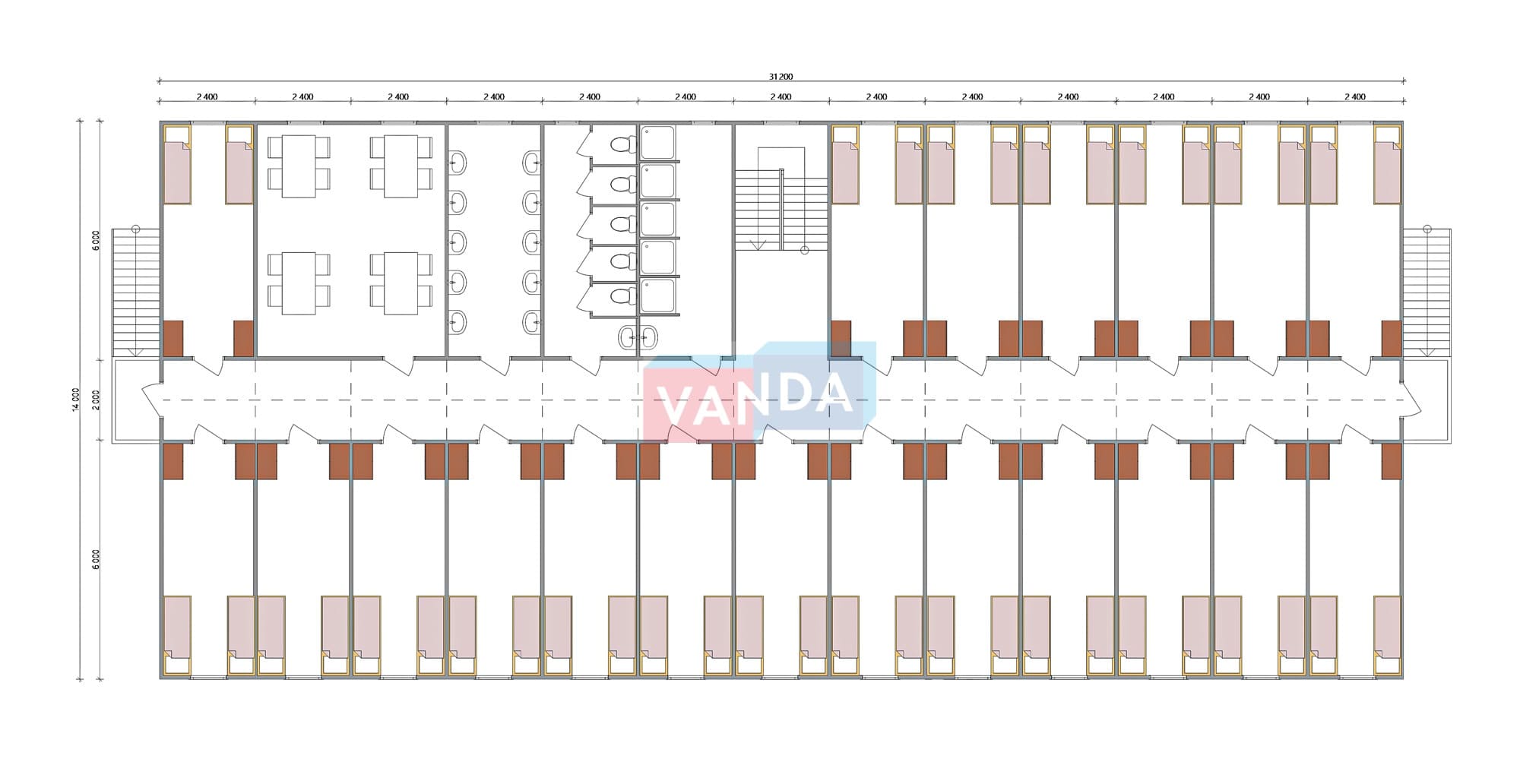 Проект общежития из блок контейнеров 12X16.8 ЛДСП