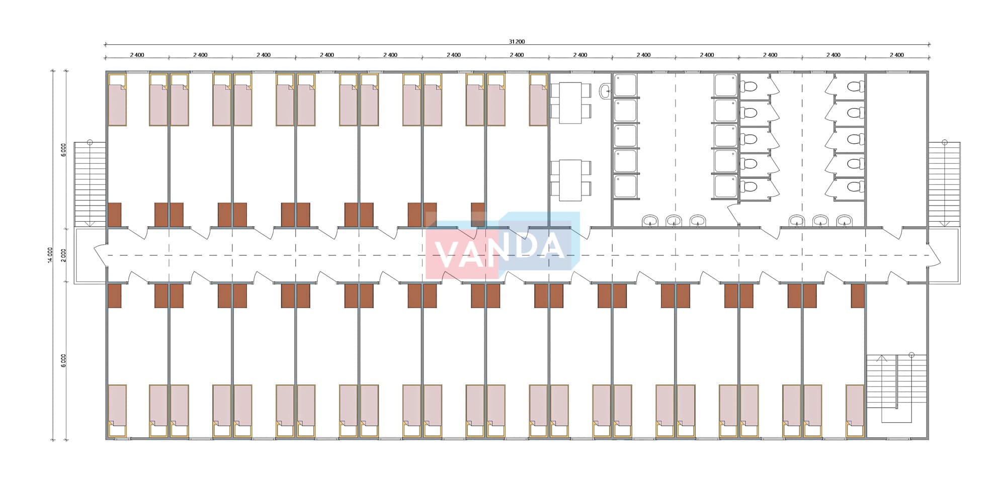 • Габаритные размеры - стандартные размеры одного модульного здания (наружные): Длина: 7 м Ширина: 2,4 м Высота: 2,5 м.